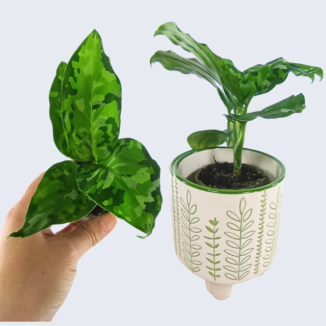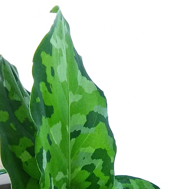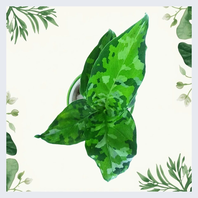 Die Pflanze ist pflegeleicht und robust, benötigt aber wegen ihres einzigartigen Aussehens etwas mehr Aufmerksamkeit. Sie bevorzugt Halbschatten oder diffuses Licht und sollte mäßig gegossen werden, wenn die oberste Erdschicht trocken ist. Aglaonema Pictum Tricolor reinigt die Luft und sorgt für ein gesundes Raumklima, ideal für Zuhause und Büro.
