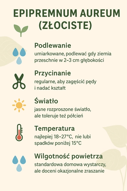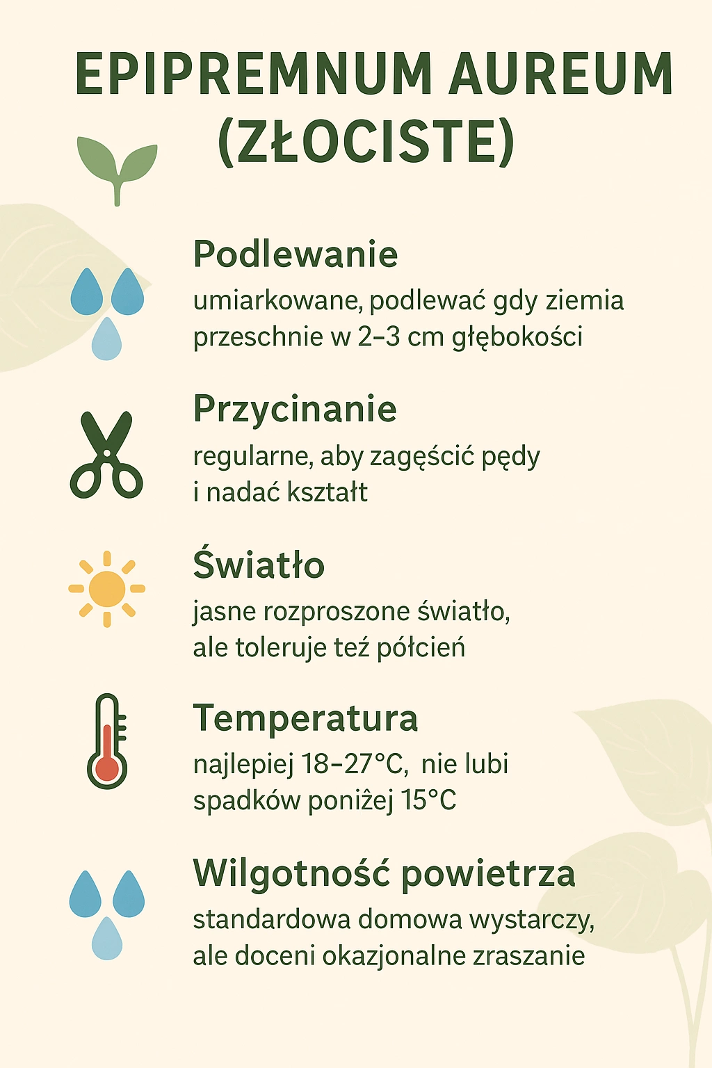 Sie bevorzugt einen hellen Standort ohne direkte Sonneneinstrahlung, um Blattverbrennungen zu vermeiden. Die optimale Temperatur liegt bei 18-24°C, und die Bewässerung erfolgt mäßig, wobei der Boden zwischen den Wassergaben leicht antrocknen sollte. Epipremnum gedeiht in normaler Blumenerde und mag hohe Luftfeuchtigkeit, die durch Besprühen erhöht werden kann.