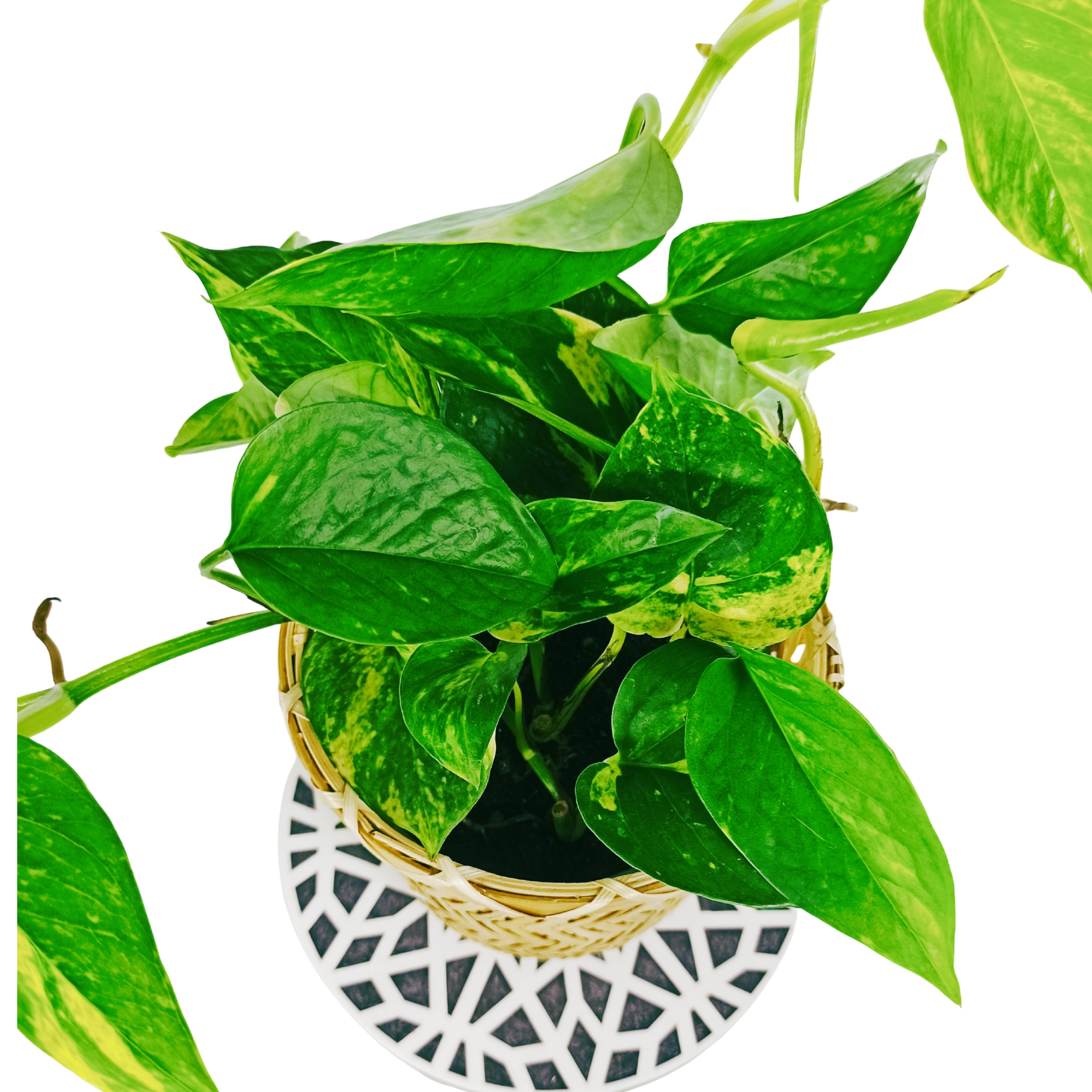 Epipremnum aureum ist eine beliebte Zimmerpflanze, die mit ihrem üppigen Wuchs und dekorativen Blättern in Grün- und Goldtönen besticht. Die herzförmigen, glänzenden Blätter und das kletternde Wachstum können mehrere Meter erreichen, was sie ideal für Regale, Hängeampeln oder als Bodendecker macht. Die Pflanze ist sehr robust und einfach zu pflegen, perfekt für Anfänger und erfahrene Pflanzenfreunde.